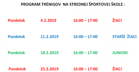 Prinášame program tréningov počas mesiaca február na Strednej Športovej Škole (športové gymnázium):