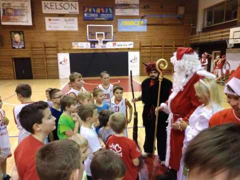 Od najmenších až po najstarších sa dnes všetci stretli v telocvični, aby sme privítali Mikuláša. Prišli chlapci z našich prípraviek od Katky Striešovej zo ZŠ Ďumbierskej a aj chlapci zo ZŠ Radvaň. V zápase kde sa pomiešali s našimi hráčmi sa nestratili a všetci si s chuti zahrali. Keď sa po krátkom meškaní objavil Mikuláš s anjelikom a čertom, ktorého chlapci trošku ponaháňali, prišlo na rad rozdávanie darčekov. Veríme, že aj budúci rok si nájde cestu k nám.
