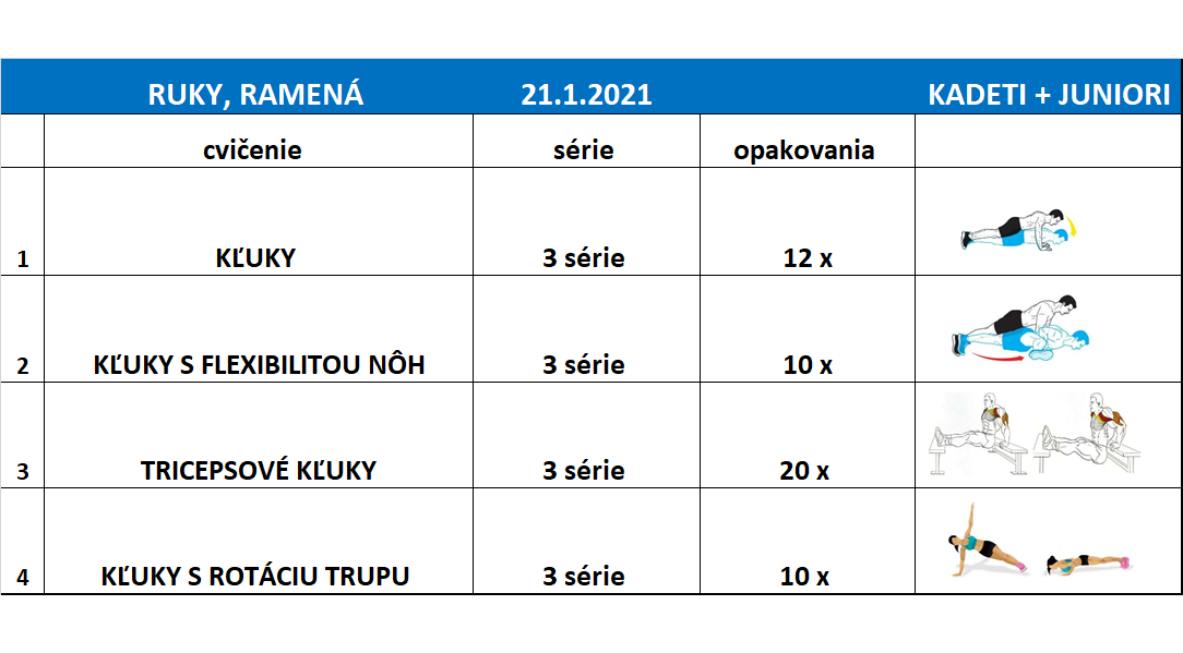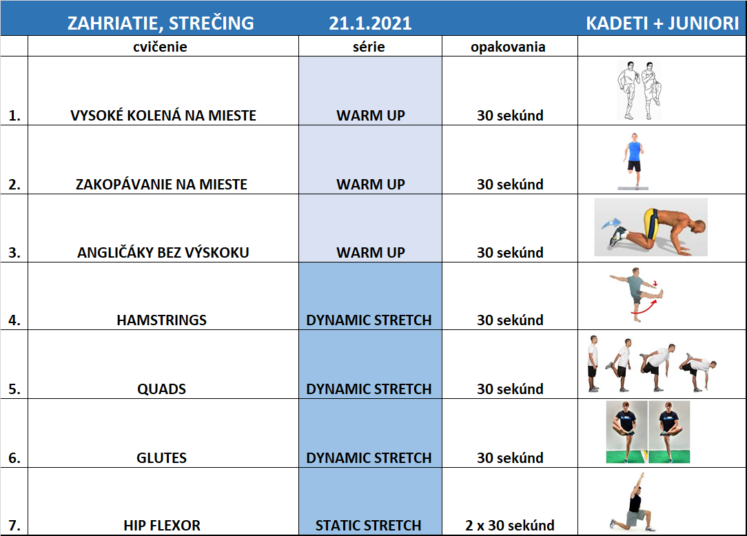 Vo štvrtok 21.1.2021 Vám prinášame tréningy pre družstvá mladších minižiakov, kadetov a juniorov.