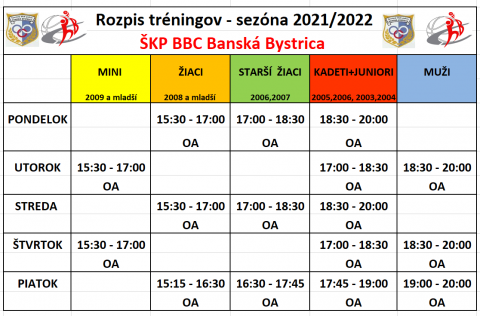 Budúci týždeň, začína školský rok, prinášame Vám rozpis tréningov v sezóne 2021/2022:
