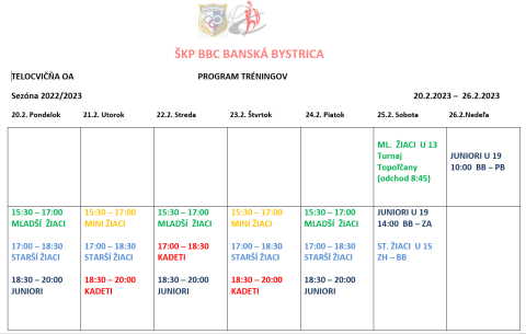 Program tréningov a zápasov | ŠKP Banská Bystrica