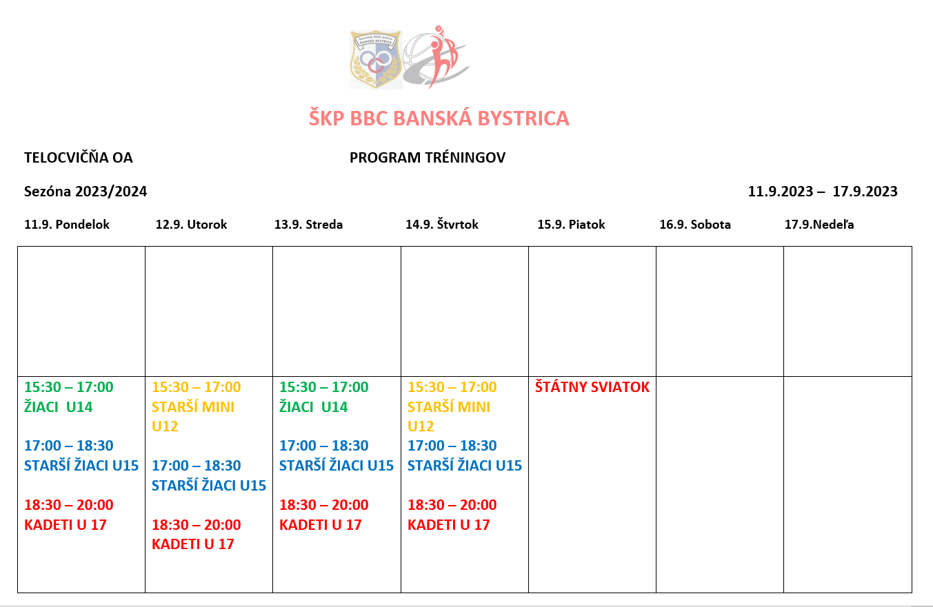 Program tréningov v krátkom týždni | ŠKP Banská Bystrica